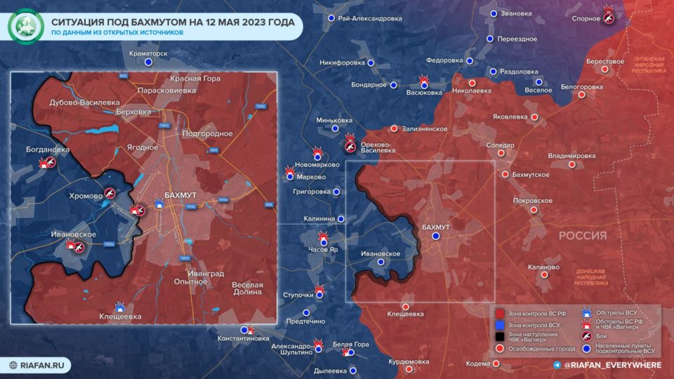 Ситуация в Бахмуте, Артемовске — карта расположения войск 12.05.2023